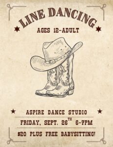 Click here to fill out the form and join us for Line Dancing. Babysitting included!